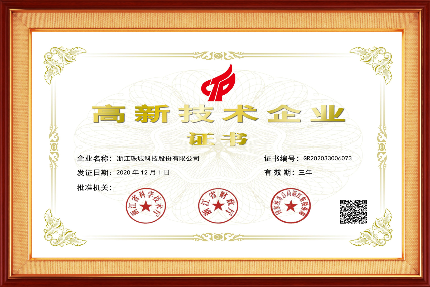 公司通過“研發創新互動化戰略”與美的集團、海爾集團等國內知名家電企業聯合研發新產品,為行業發展不斷帶來新的技術突破,引領行業升級換代!截止到目前,珠城科技及子公司累計獲得129項專利技術,其中發明專利10項,榮獲工信部“專精特新”小巨人、工信部綠色工廠、國家高新技術企業、浙江省專精特新中小企業、浙江省智能工廠(數字化車間)、浙江省科技型企業、溫州市市長質量獎企業、溫州市畝均效益領跑企業等多項重要榮譽,并承接國家星火計劃、國家火炬計劃。